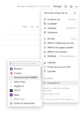 The objective here is to set up a Python program allowing to modify the content of a Notion database. A skeleton is available here. The application in the end must be able to: